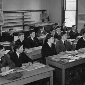 For the winter and spring terms we wore grey trousers – shorts for the first two years – and jackets with white shirts and black ties. In the summer term a blue blazer instead of the grey jacket. Out of school everyone wore a school cap except prefects.