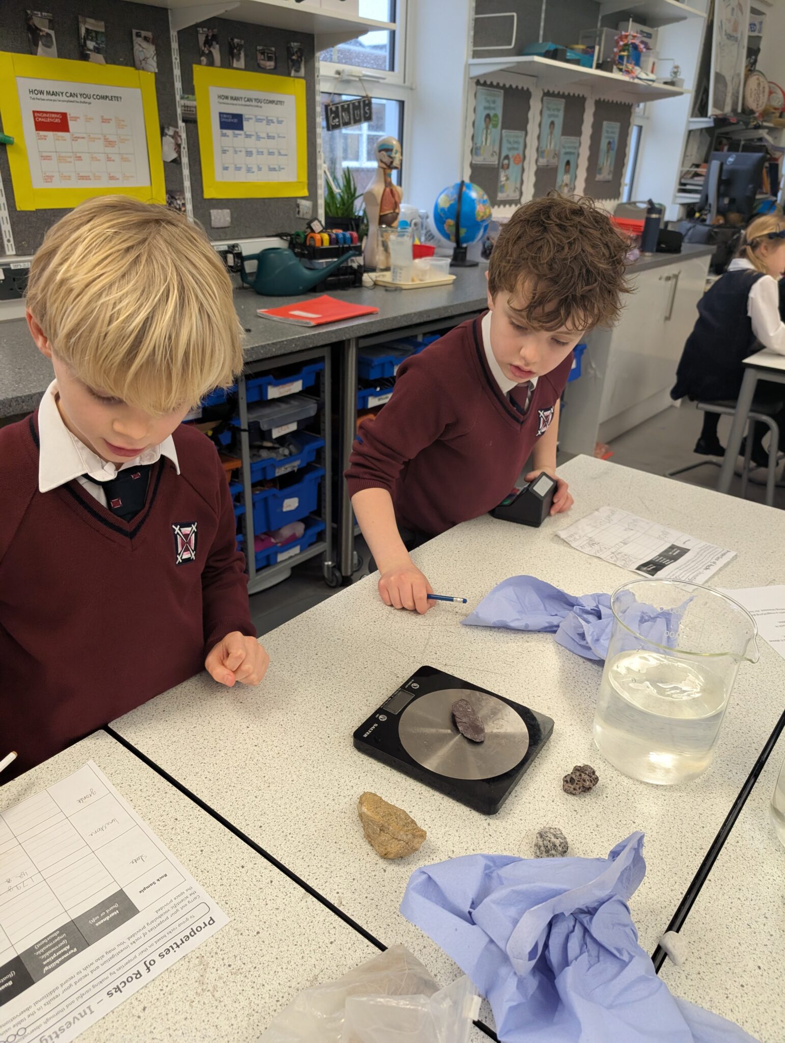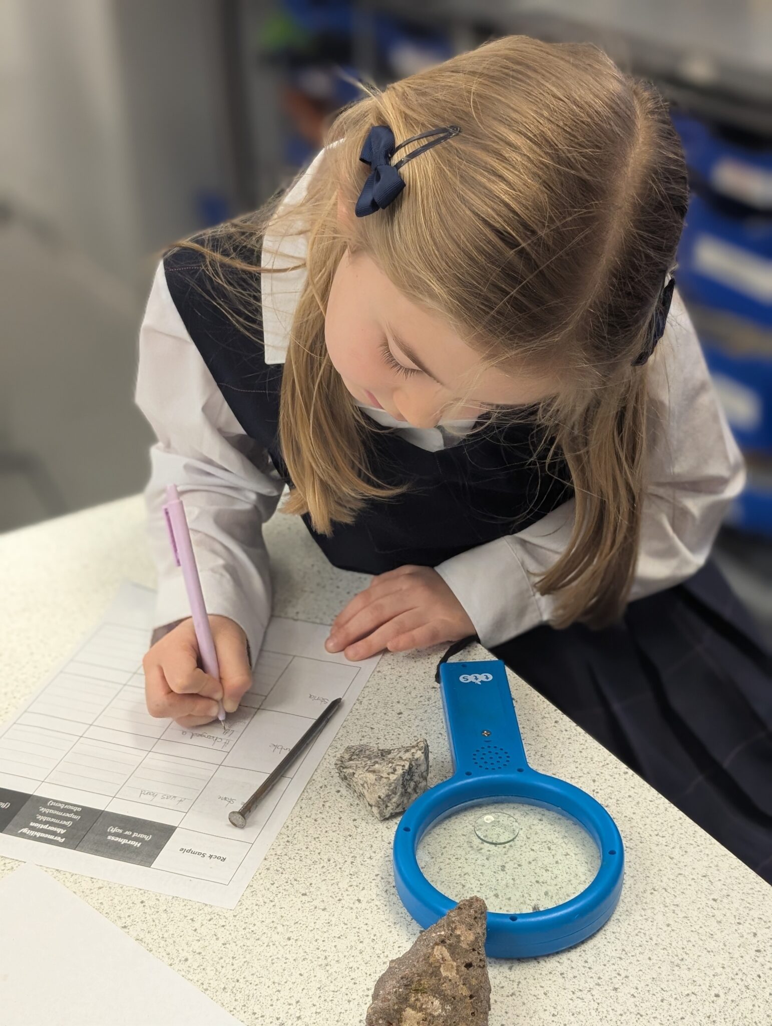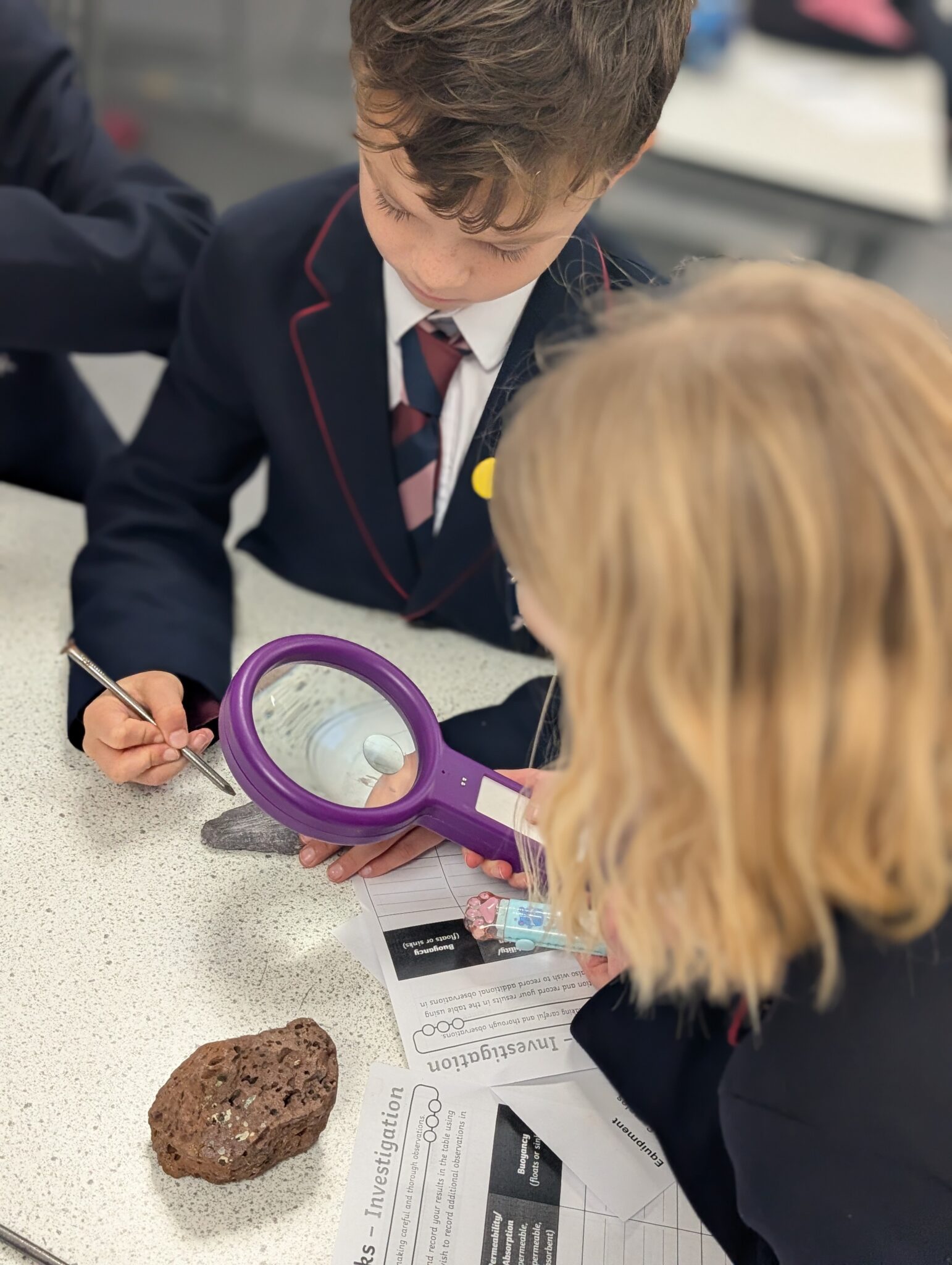 Through hands on investigations, the pupils observed how rocks react to water, tested which rocks float or sink, and explored how hard or soft different rocks are. They used magnifying glasses to make careful observations and shared their ideas using scientific vocabulary.