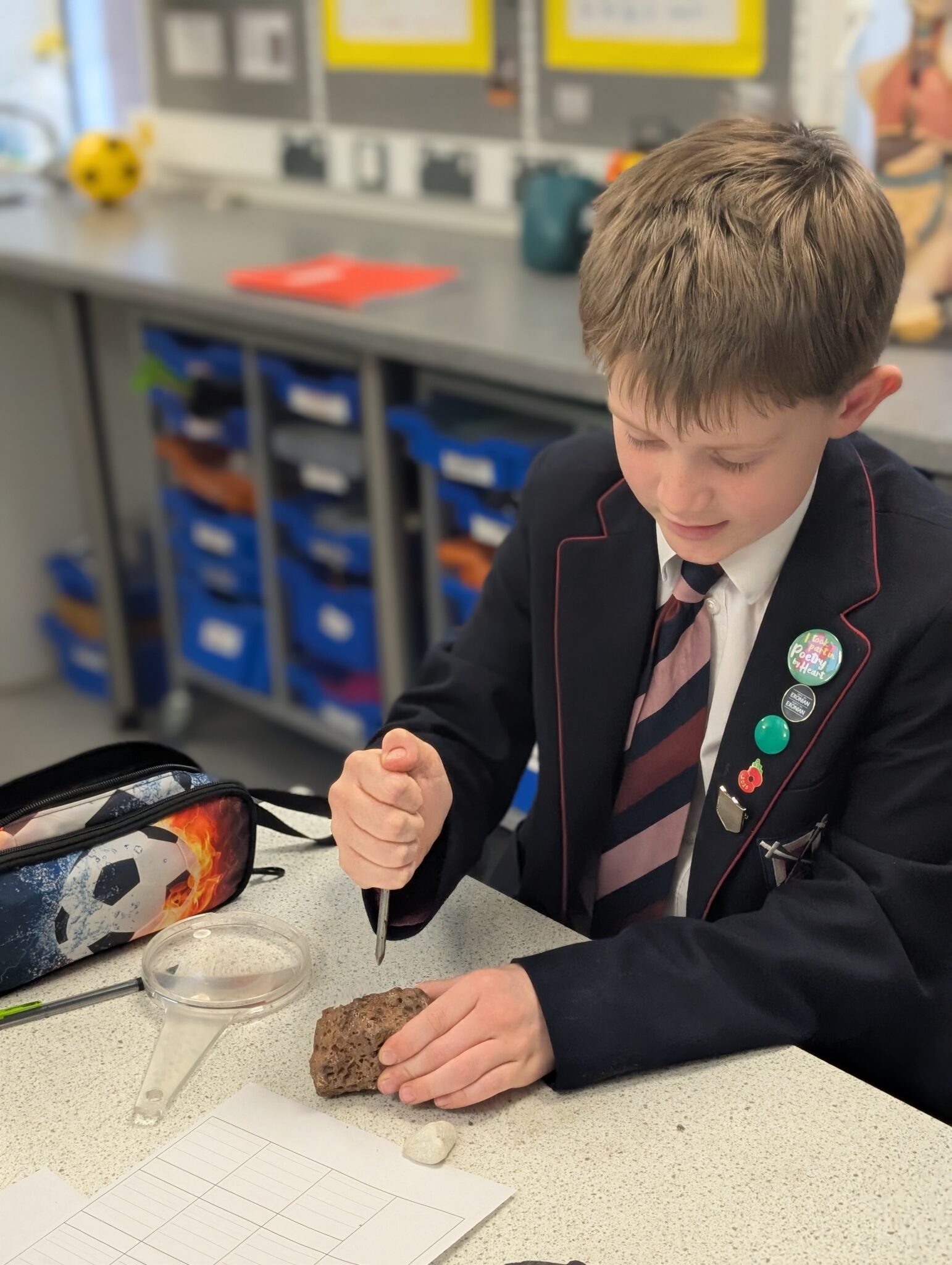 Form One have been exploring their new science topic on rocks and fossils. The pupils have been investigating different types of rocks and experimenting with their properties, including permeability, absorbency, buoyancy and hardness.