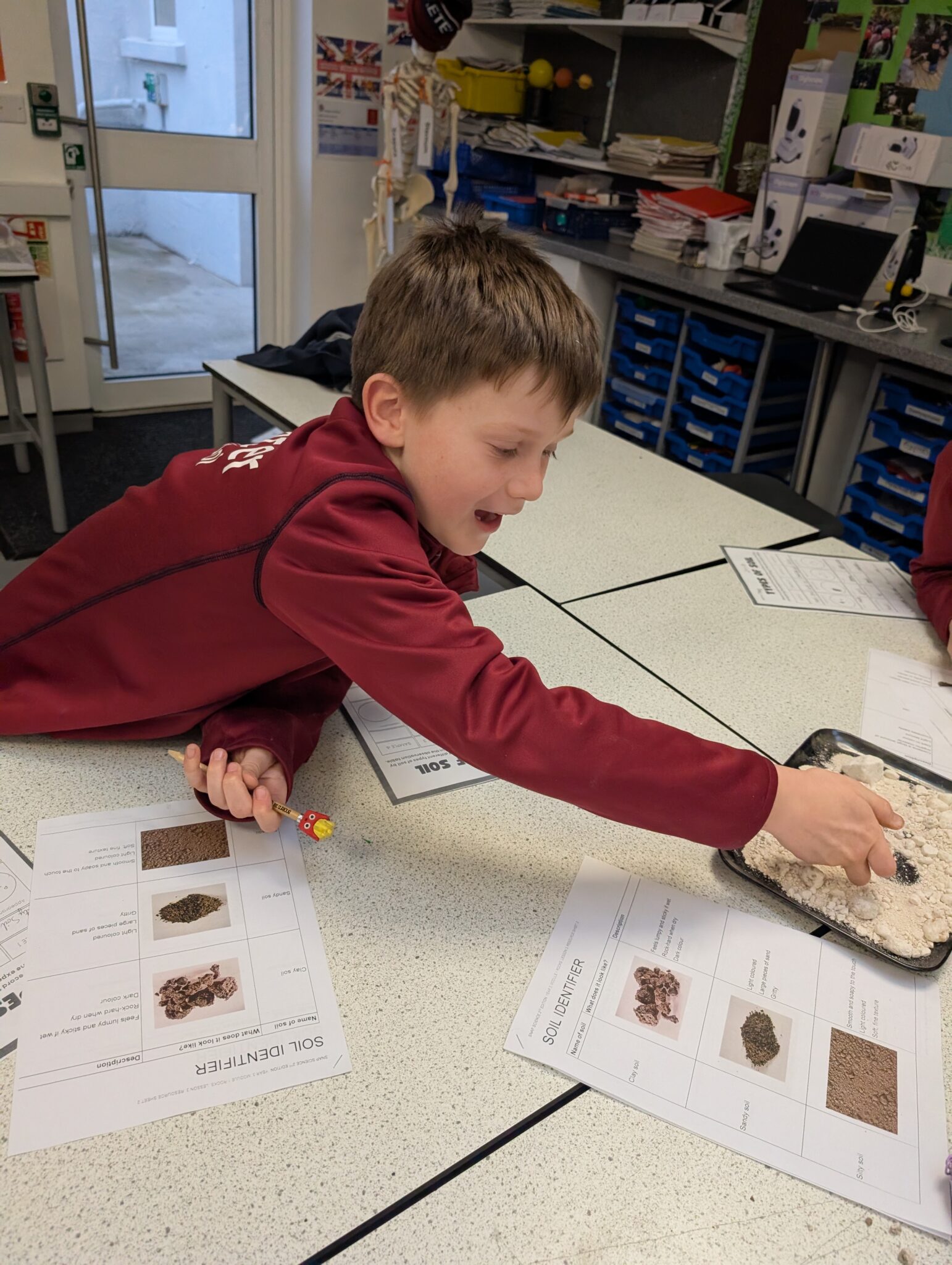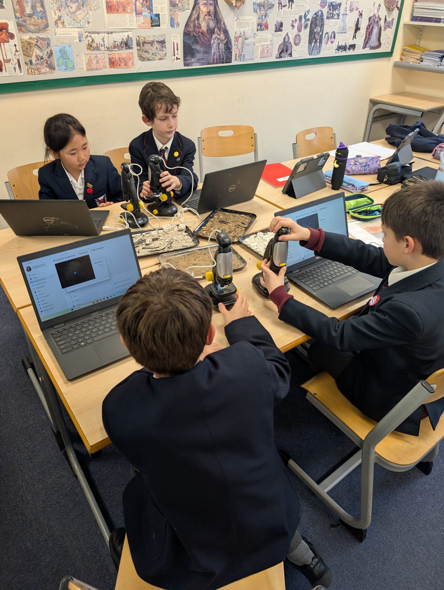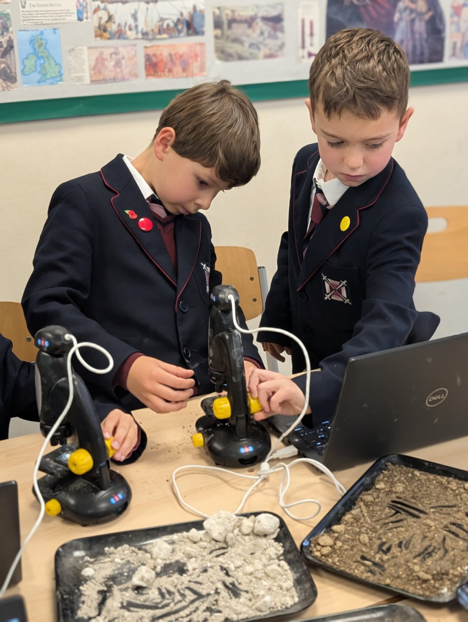 The classes were absolutely brilliant and quickly worked out how to adjust the microscopes to get some really interesting views of the soil. There was lots of excitement as they spotted tiny particles, grains and unexpected details they wouldn’t normally be able to see.
