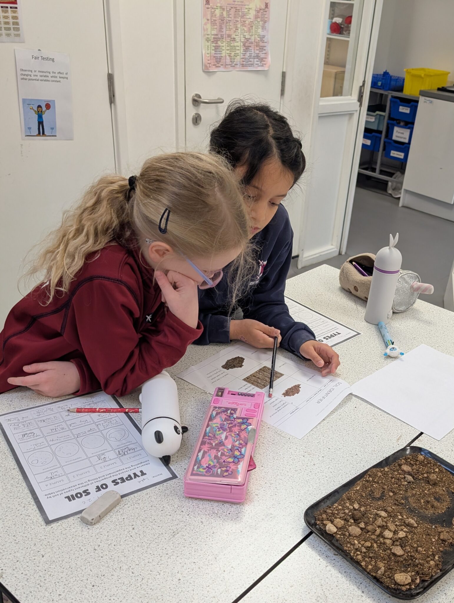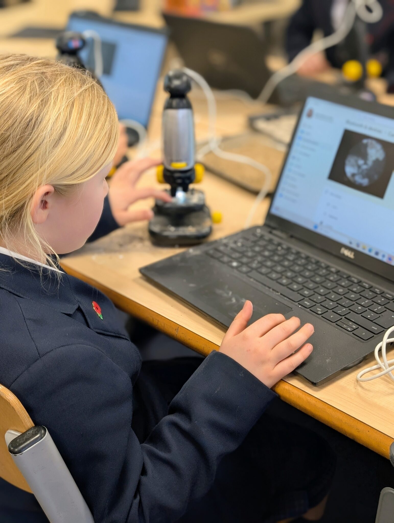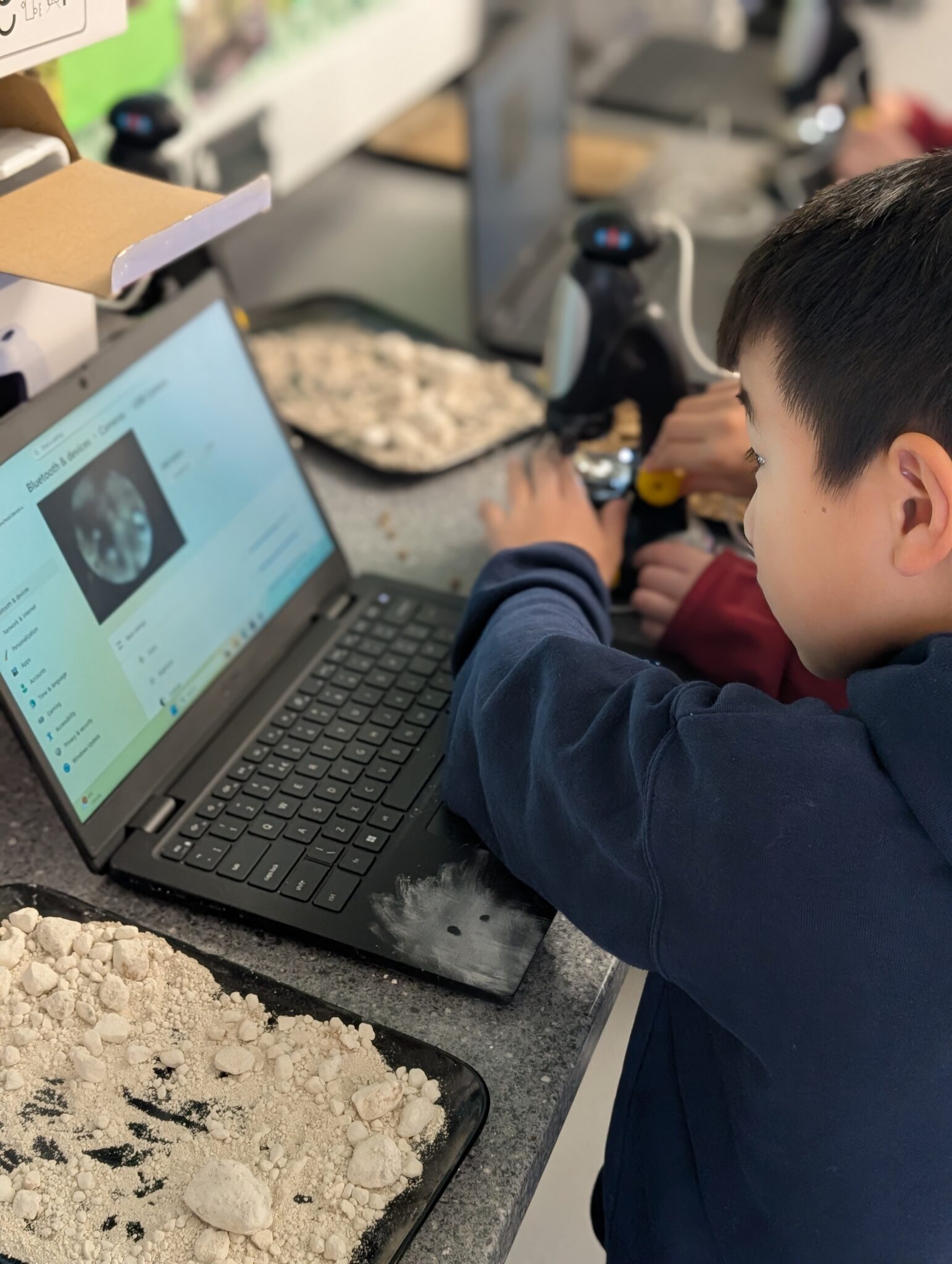 The classes were absolutely brilliant and quickly worked out how to adjust the microscopes to get some really interesting views of the soil. There was lots of excitement as they spotted tiny particles, grains and unexpected details they wouldn’t normally be able to see.