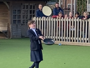 After a hard fought race, Gilbert were the eventual winners. Well done to all our pupils and thank you to our Pancake Master, Mr Pidwell for organising such a fun event.