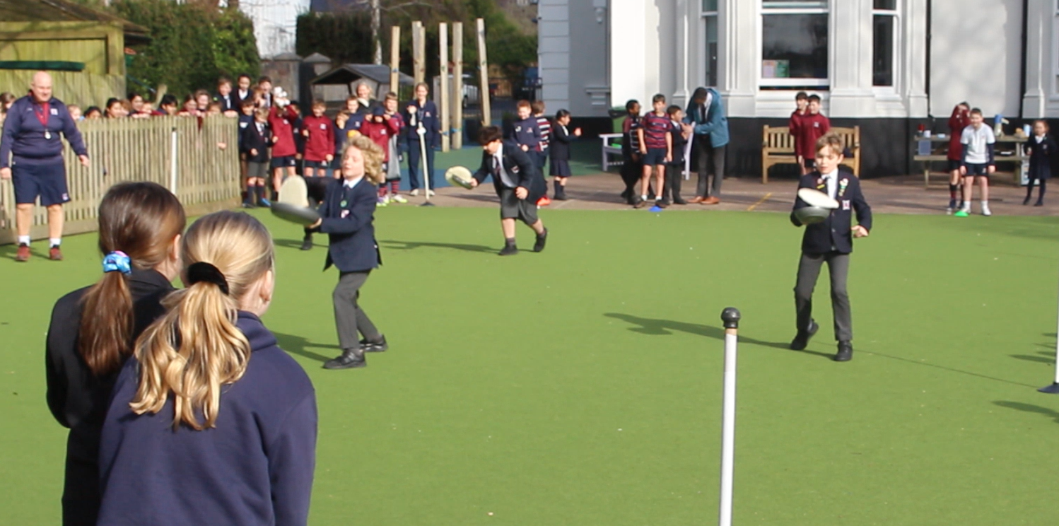 Four House teams competed in the pancake tossing relay, with the frying pan and pancake as the baton. Each House were represented by a team of eight, featuring two pupils from each year group and captained by their House captains. As the pupils run, each pan carrier has to toss their pancake at two marked stations along the way.