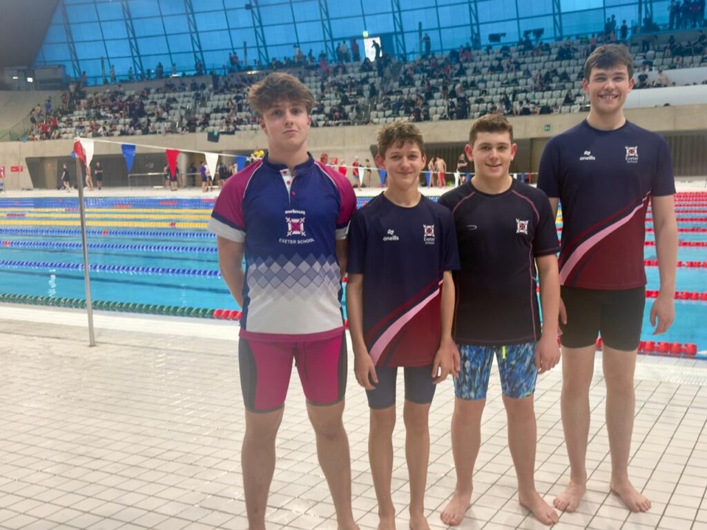 This is the first time an Exeter school has competed in this prestigious event for independent schools and the team put in strong performance, with particular note the girls of Alice, Meighan, Molly and Sophie who ranked 18th out of 42 in the small schools category in the 4 x 50 freestyle relay.