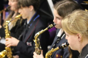The large audience was treated to a polished and entertaining programme, starting with a quartet featuring Noah P on solo sax, Freddie C on drums, Mr Tamblyn on piano and the bass player who supports the monthly Jazz Club sessions. Jazz Bands 1 and 2 were on excellent form, playing classic big band numbers Ladybird, The Chicken and Fly Me to the Moon and Route 66. Swunk did not disappoint, with some excellent improvised solos from across the band, whilst Swunkette had everyone’s feet tapping, featuring vocals from U6 pupils Rebecca M and Emma T. The concert also featured two pupil-led bands who shifted the genre to more rock than jazz, which were also greatly appreciated by the audience.