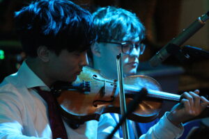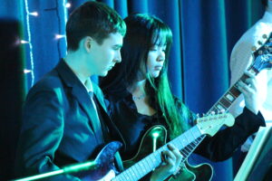 The Music Hall was transformed into a sophisticated night club on Wednesday evening for the Jazz, Rock and Pop Concert. Stage-lighting set up by Miss Smith and operated by U5 pupil Stan M, who also balanced the sound throughout the evening, created the right ambience, which was further complemented by delicious mocktails (sparkling apple juice and elderflower, peach ice tea and cranberry, orange and lemonade), olives and crisps, all provided by Mr Swan’s catering team.