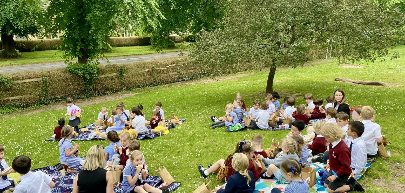 On Tuesday, Miss Lawrence organised our first ever house picnic. All children (and staff!) brought in a teddy to accompany them. Nursery, Reception and Year 1 enjoyed picnic lunches in our beautiful grounds under the shade of the trees. Meanwhile, Year 2 went over to Exeter School to have their picnic with Form One pupils. They also enjoyed playing in the junior school adventure playground and even had time for an ice-cream!